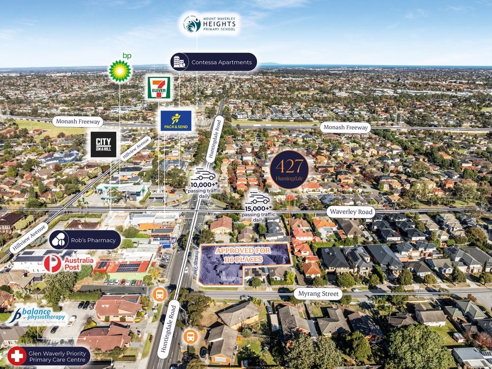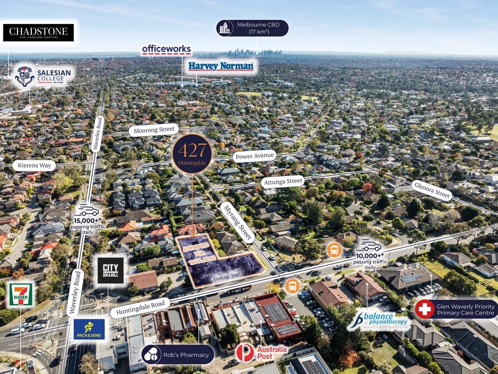 + Prime 50m+ frontage to Huntingdale Road and Nyrang Street with exposure to over 10,000 passing vehicles daily