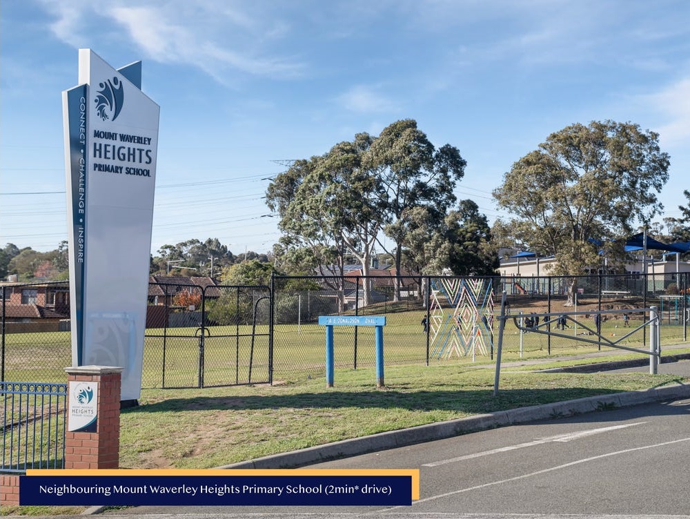 + Adjacent to Mount Waverley Heights Primary (1.7km*) and Salesian College Chadstone (1.3km*), with a combined enrolment of over 1,400* students.