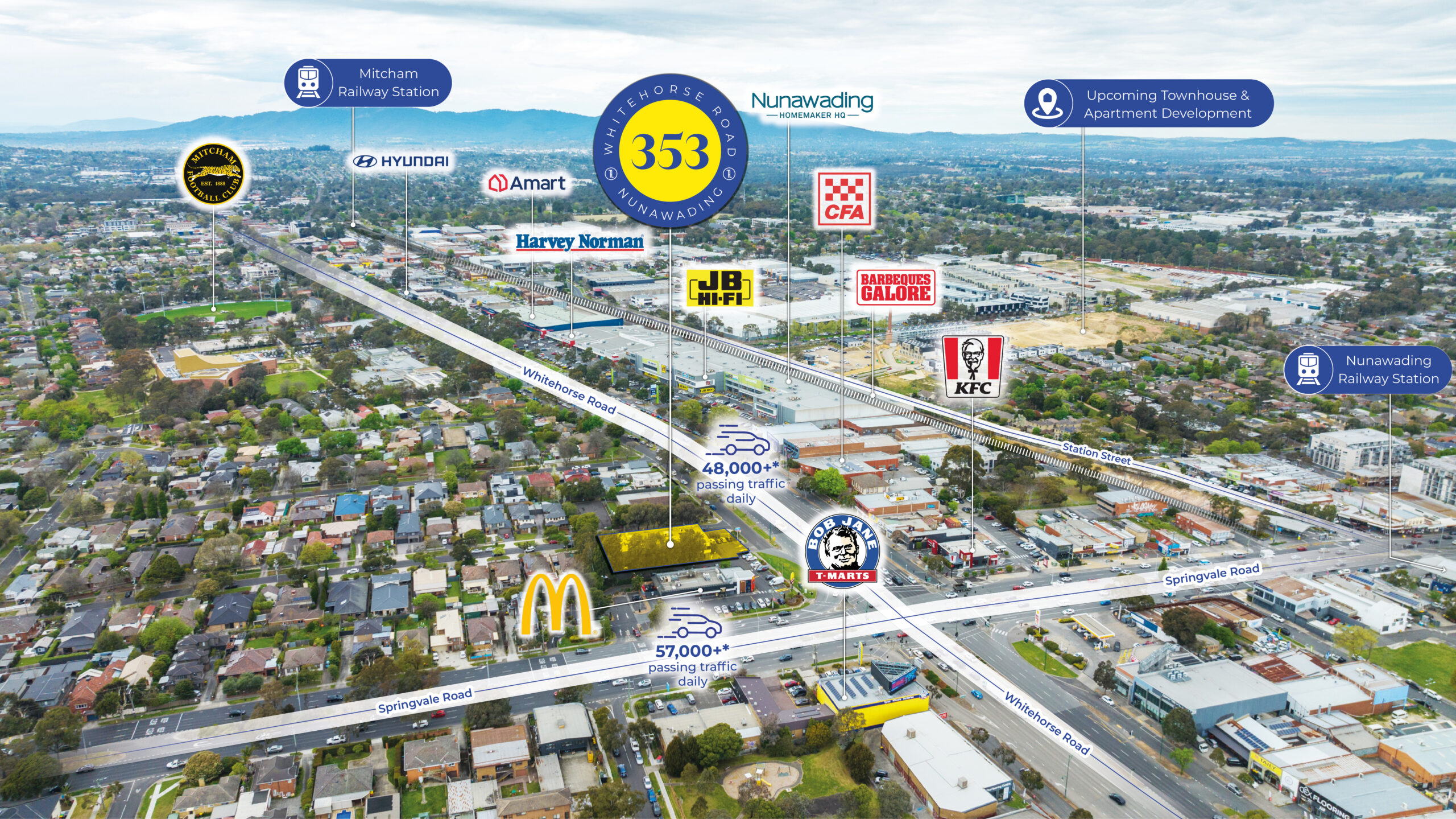 + Extraordinarily high exposure to some 100,000+* cars passing through the intersection of Whitehorse Road and Springvale Road daily