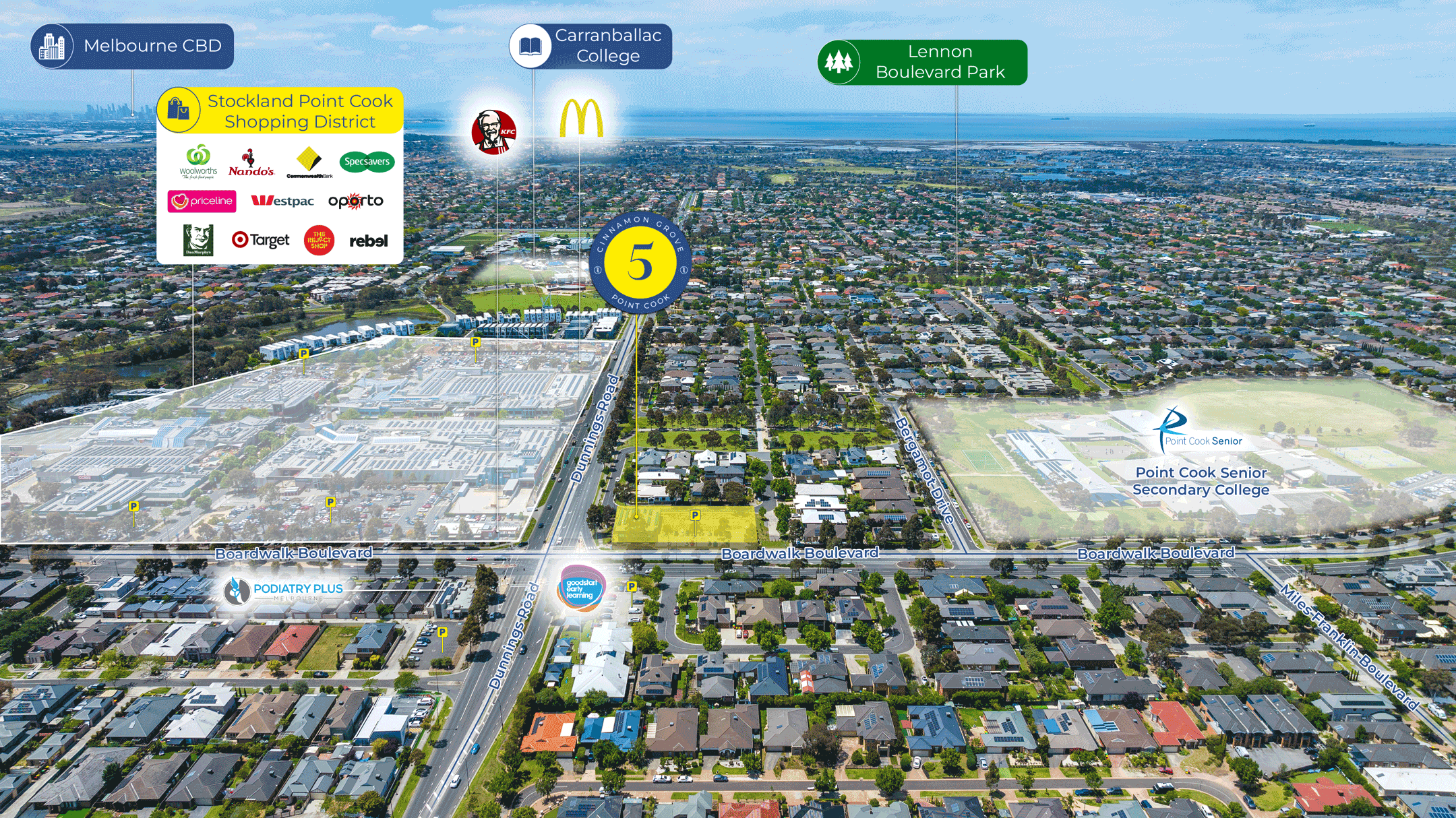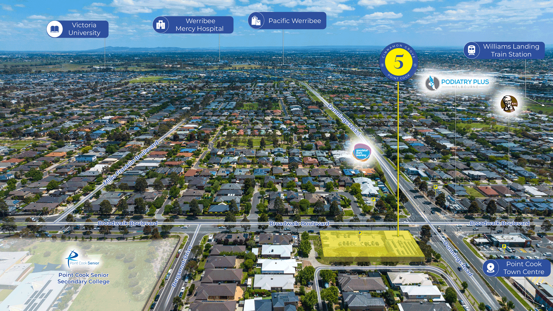 + Immediately opposite Stockland Point Cook Shopping Centre, and close proximity to Werribee Mercy, St Vincents Private and Victoria University (all within 5km*)