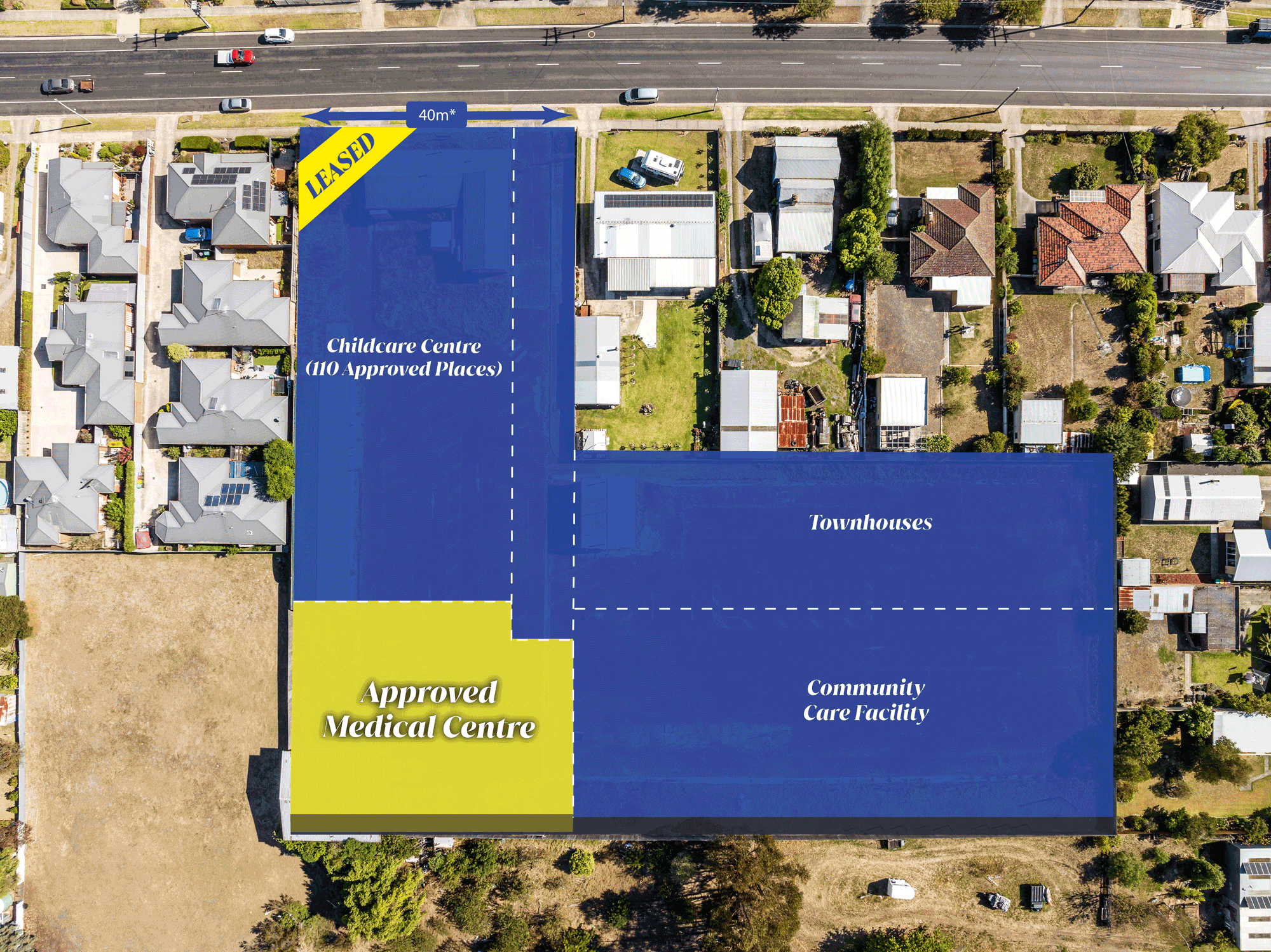 The Leasing Agency is delighted to present this medical centre for lease, featuring an adjoining pre-committed Childcare centre and proposed townhouses.