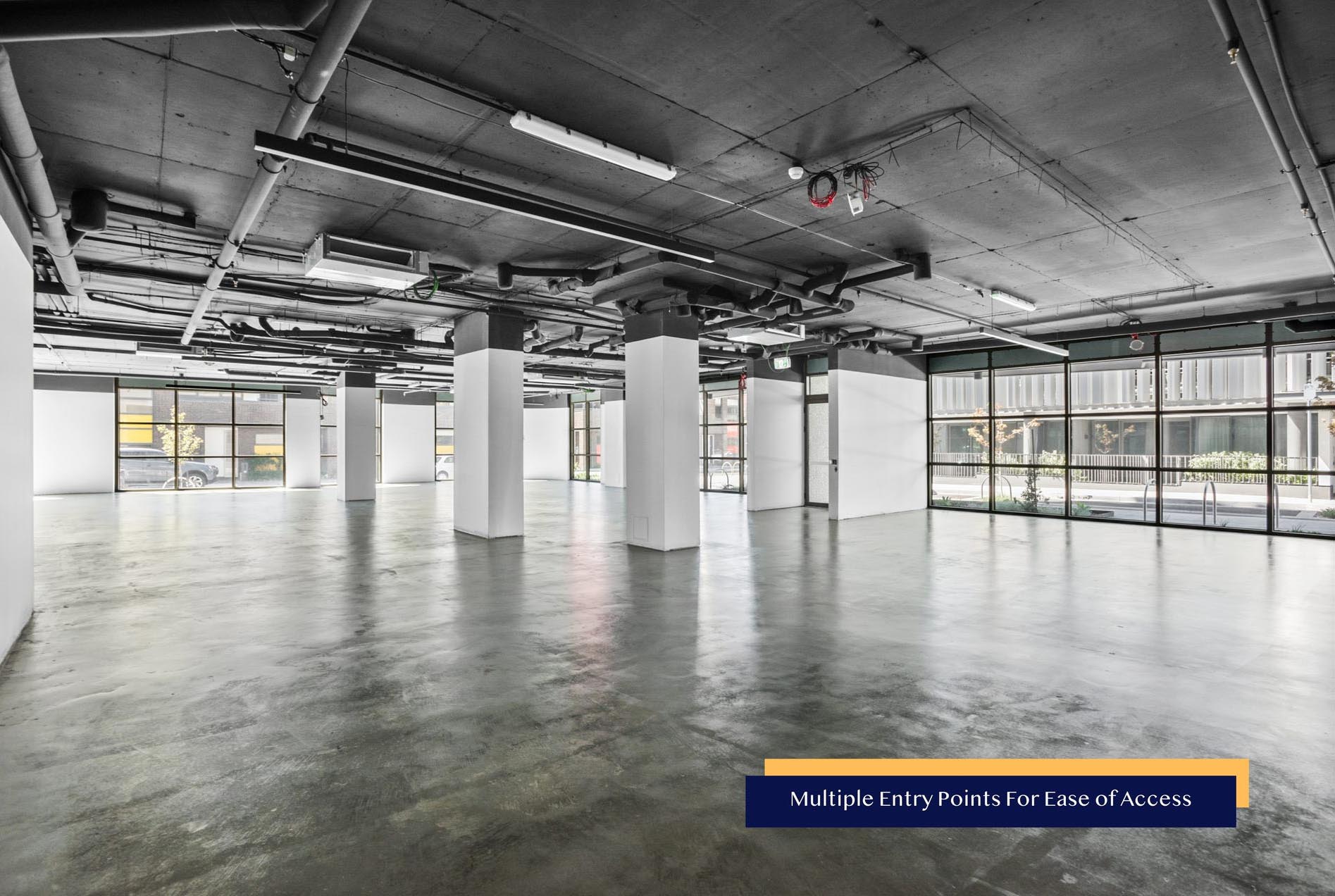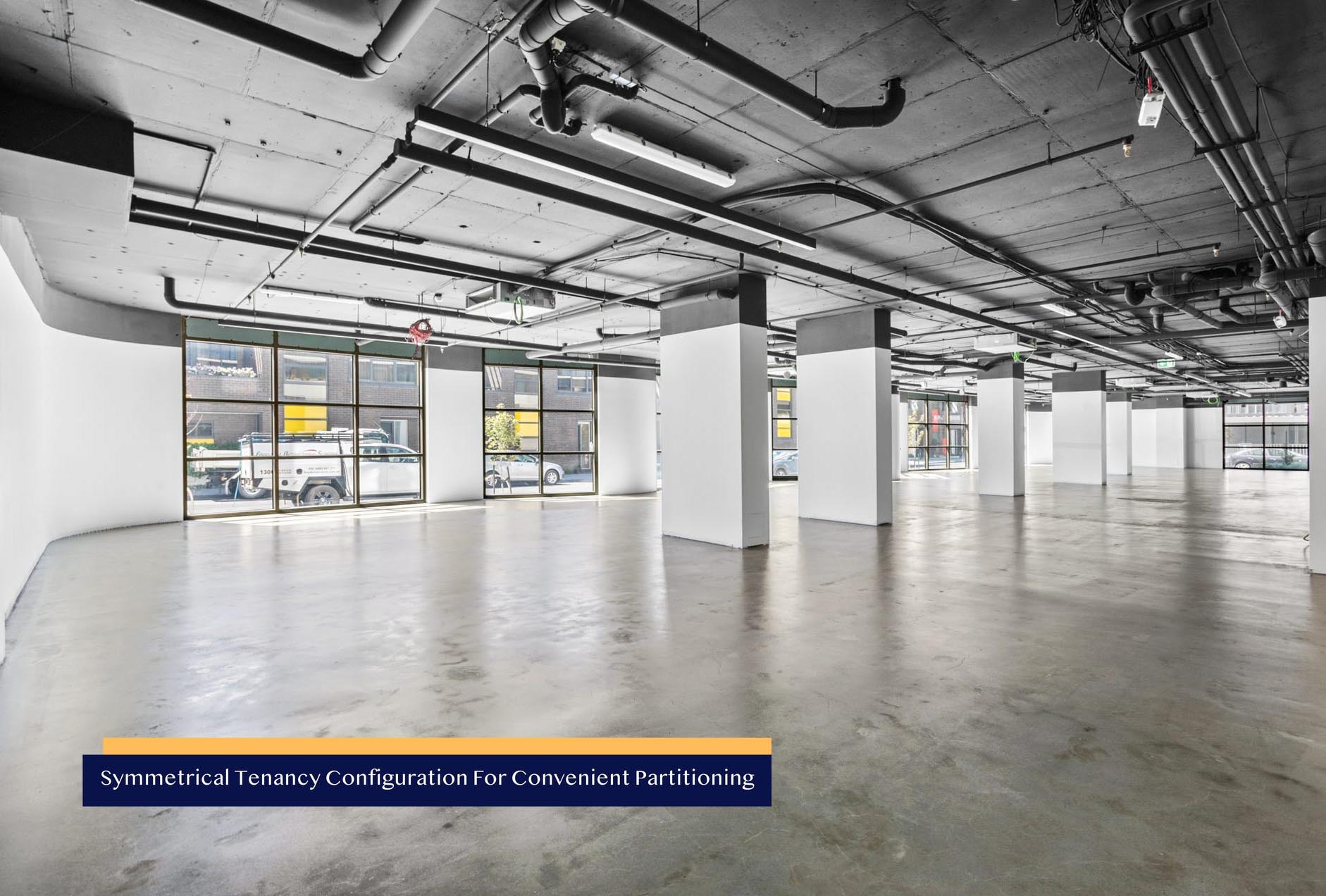 + High-quality existing bathroom amenity in the common area, with provisions for a dedicated in-tenancy bathroom and kitchenette