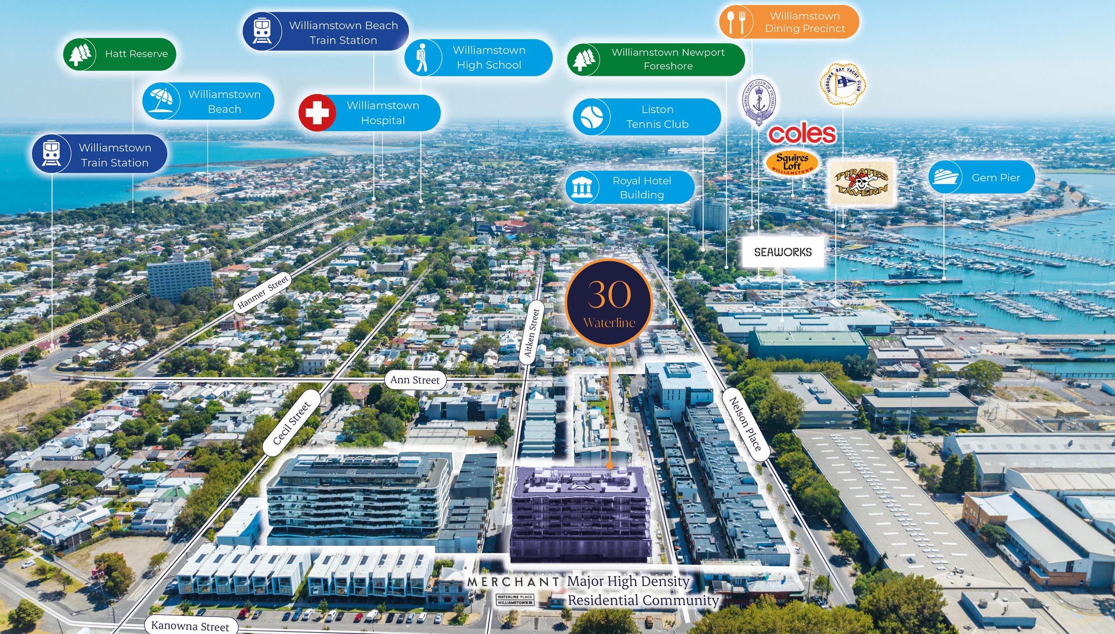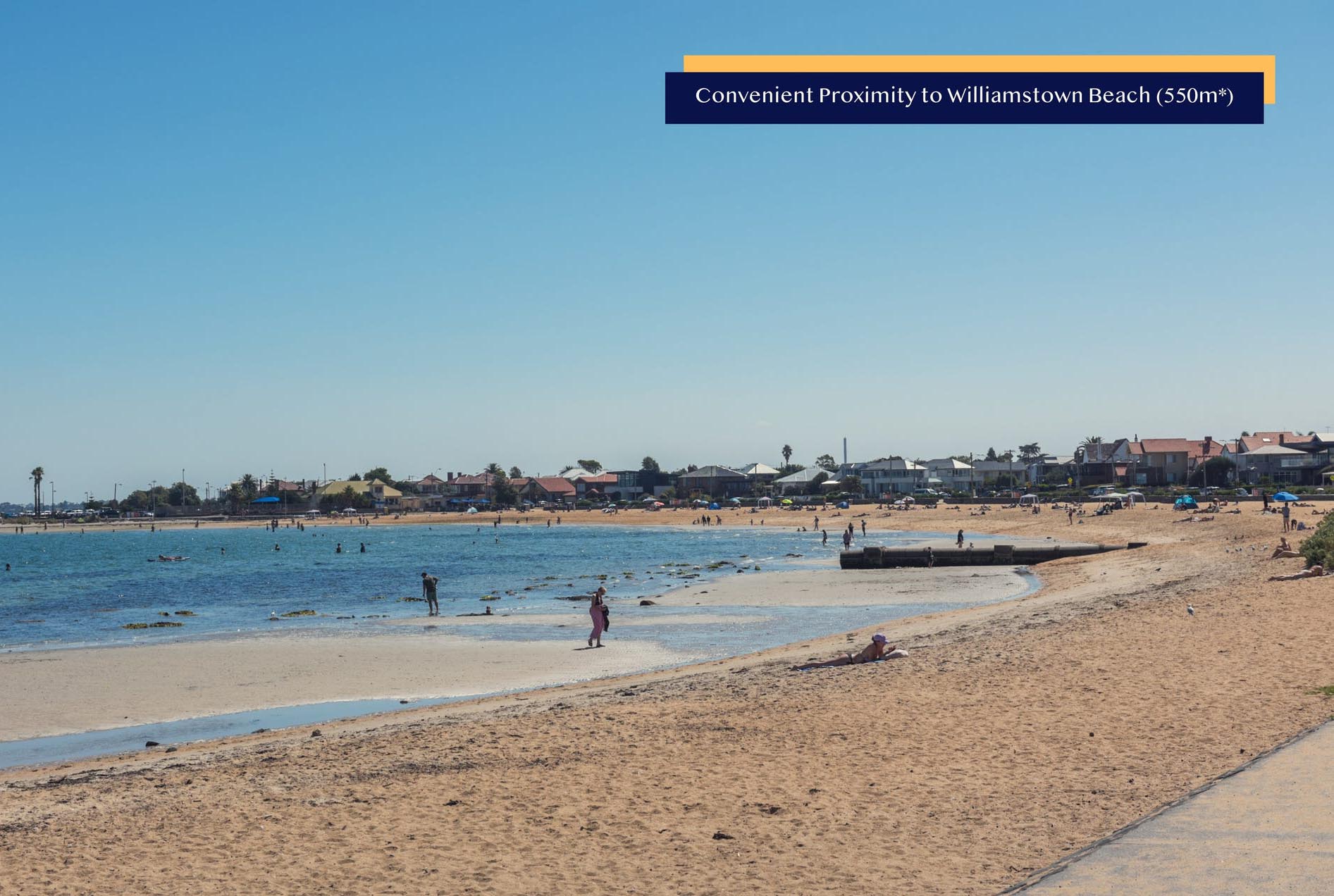 + Proximity to major landmarks including nearby shops along Nelson Place (50m*), Point Gellibrand Heritage Park (450m*) and Williamstown Beach (550m*)