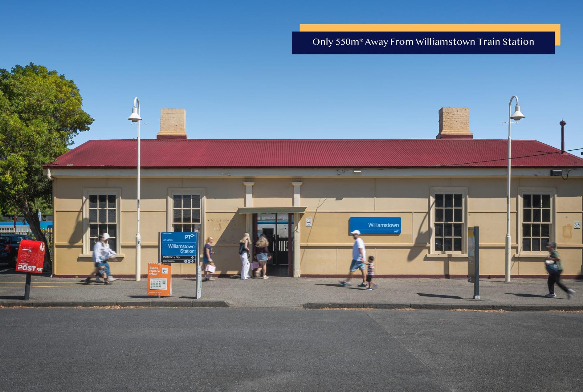 + Direct access to the Waterline Place bus stop (30m*) and a short walk to Williamstown Train Station (550m*)